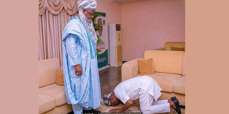 A viral image circulating on social media has sparked controversy, allegedly showing Benue State Governor Hyacinth Alia bowing before the Sultan of Sokoto, Sa’ad Abubakar III.
